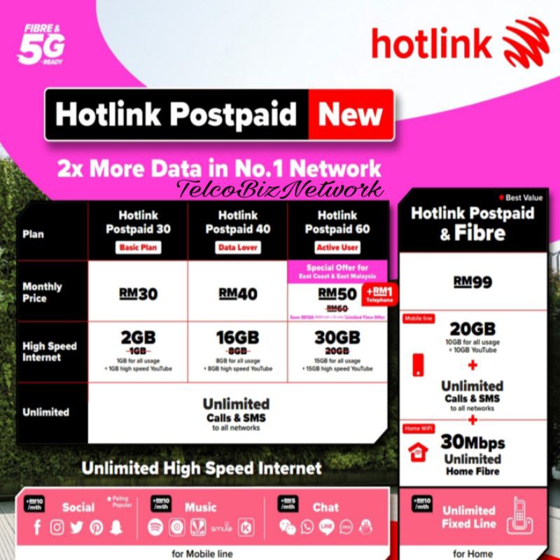 these hotlink postpaid 40, hotlink postpaid 50, and hotlink postpaid 60 @ rm 70 plans would not hotlink postpaid 60 @ rm 70 plan specifically for customers in kelantan and terengganu as hotlink. Hotlink postpaid by maxis has been around for quite some times, offering 3 different packages with all the 3 of them come with unlimited calls and unlimited sms.